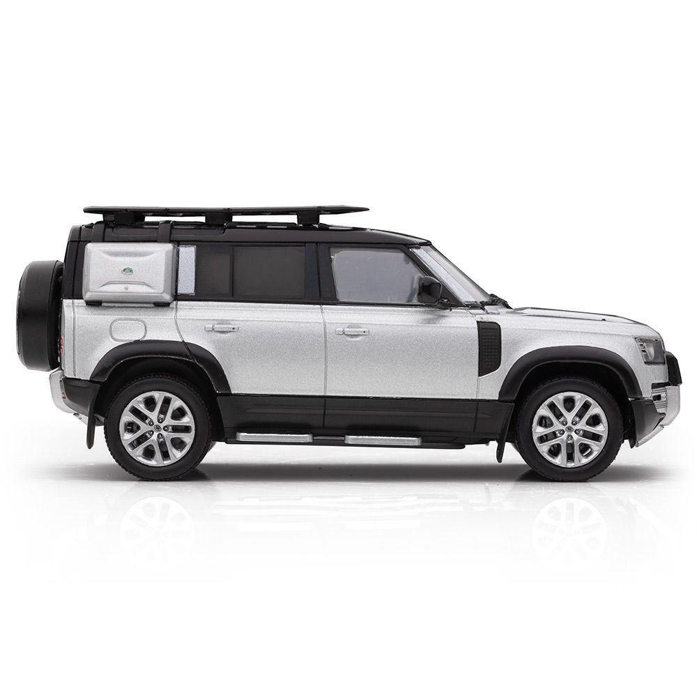 Collectors’ edition replica of the new Land Rover Defender 110 with Explorer Pro accessory pack in Indus Silver. High quality diecast model made from zinc alloy.