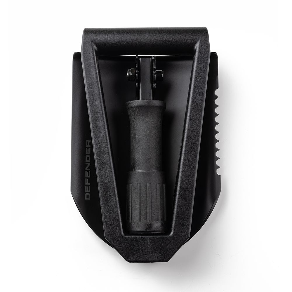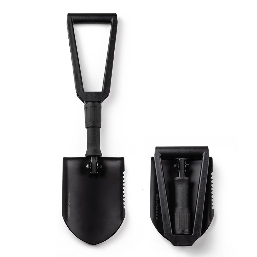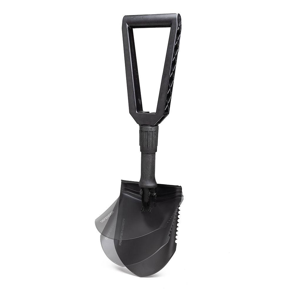 A tool to travel with. The all-terrain shovel folds down into a portable size. Reinforced folding shovel designed for easy storage. Easy-grip. Dual edged for multi-purpose use. Rigid handle for leverage and durability.