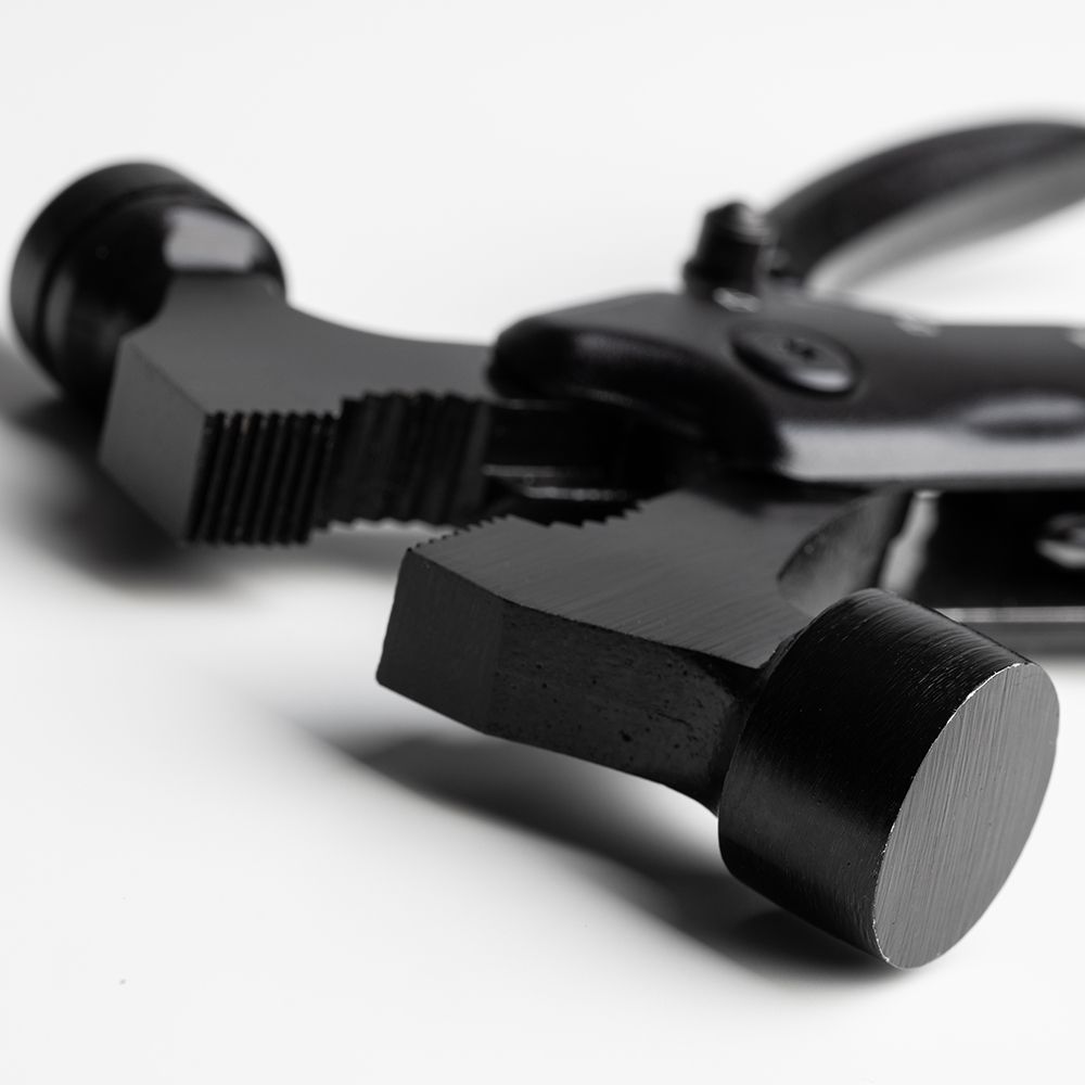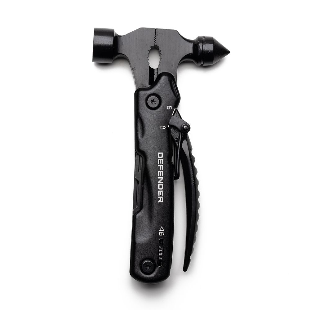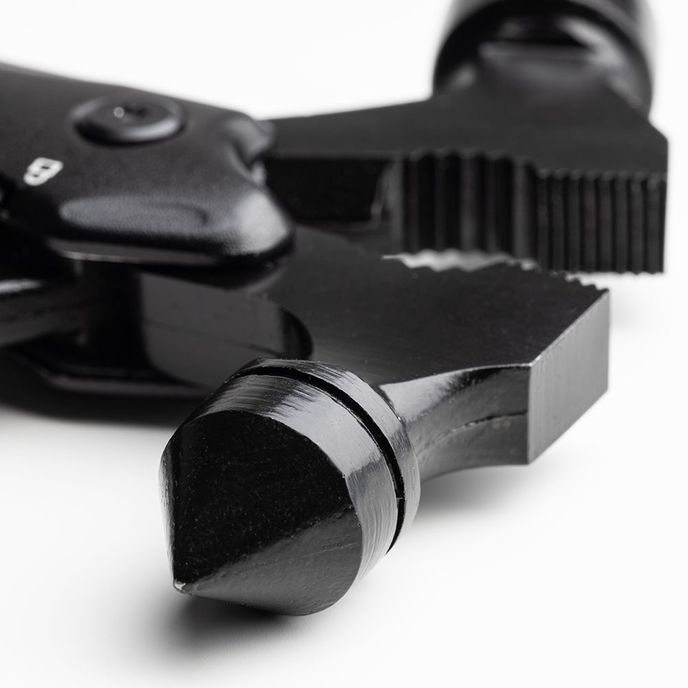 Advanced multi-tool with matte-black hardware. Includes 11 utility tools, including; hammer, pliers, glass breaker, blade, saw, steak knife and wire cutters.