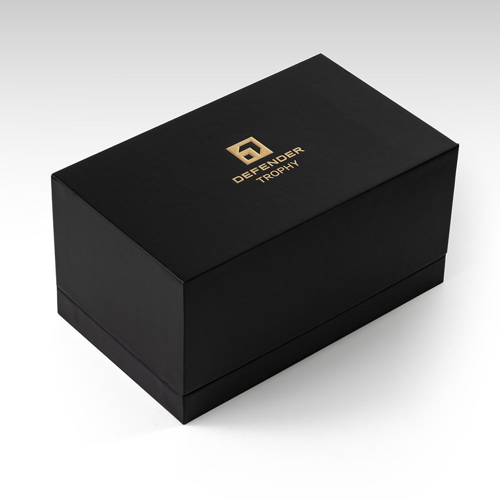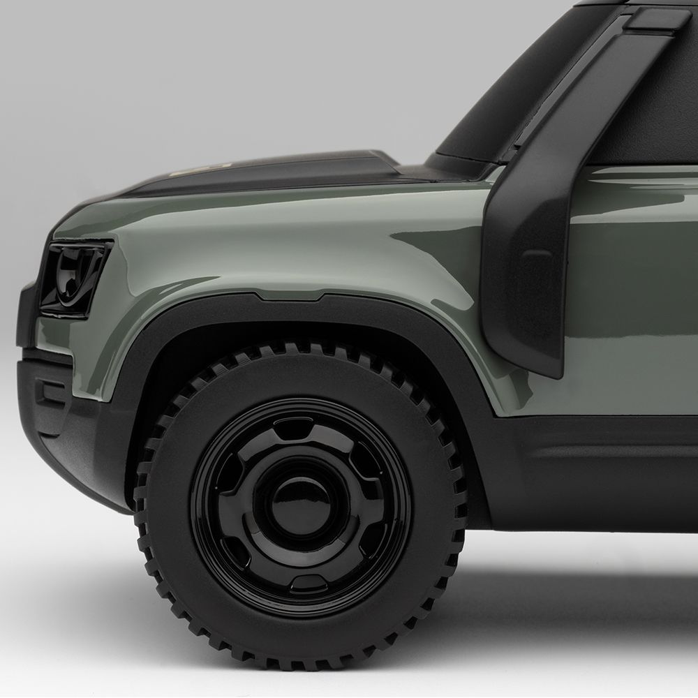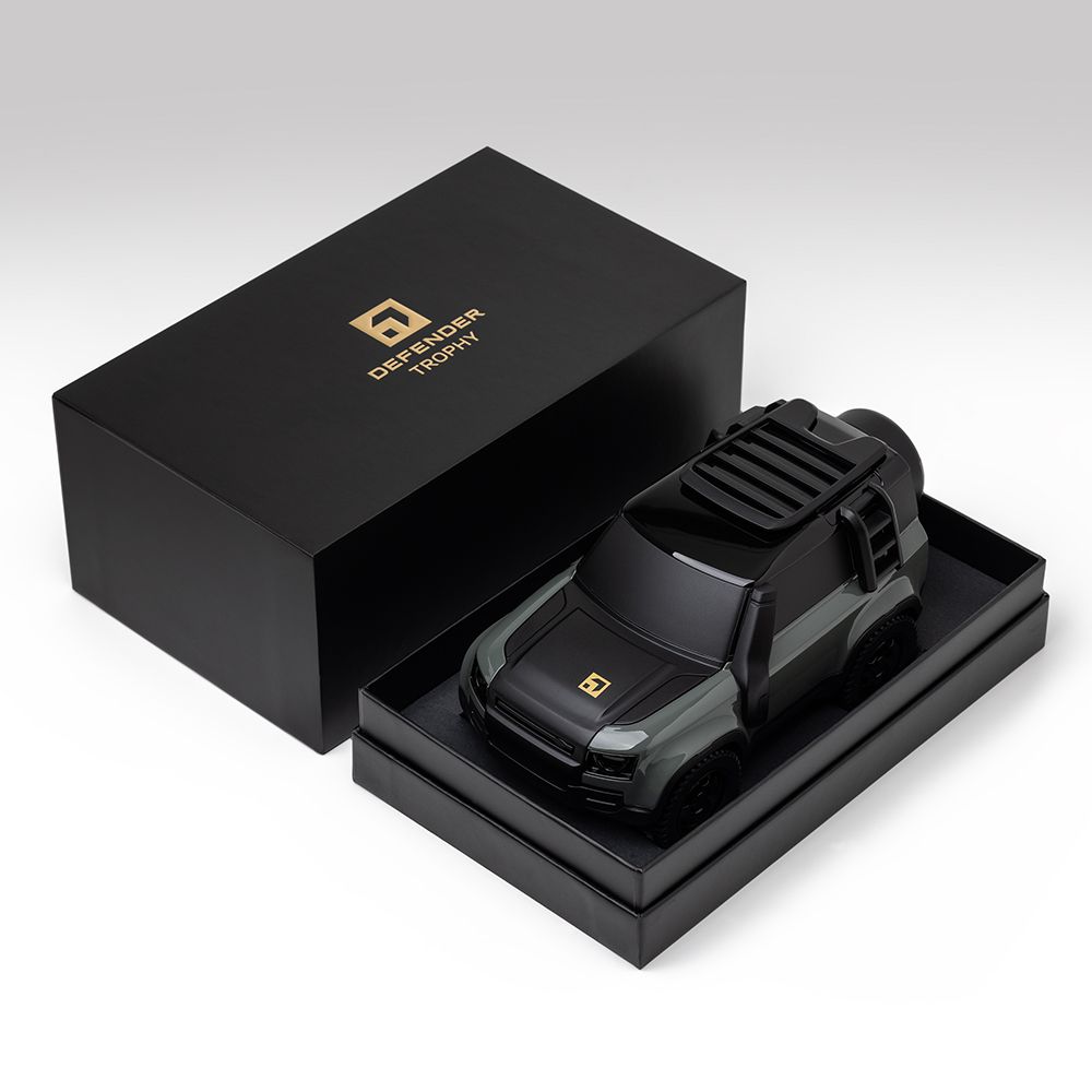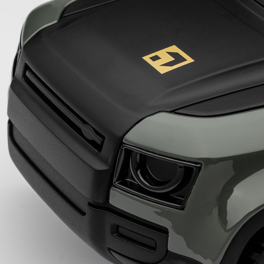 A tribute to the legendary Defender Trophy vehicles. Finished in Keswick Green, this model features a pannier, roof rack, and side ladder; capturing the rugged spirit of adventure in compact form. Perfect for collectors and enthusiasts.