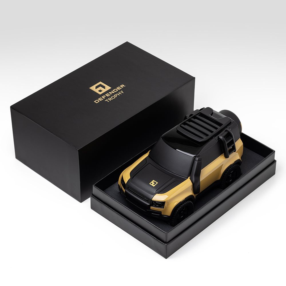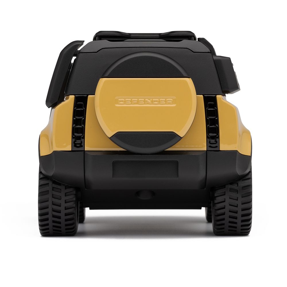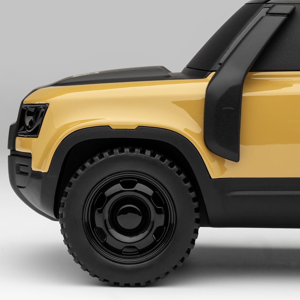 A tribute to the legendary Defender Trophy vehicles. Finished in Modern Sandglow Yellow, this model features a pannier, roof rack, and side ladder; capturing the rugged spirit of adventure in compact form. Perfect for collectors and enthusiasts.