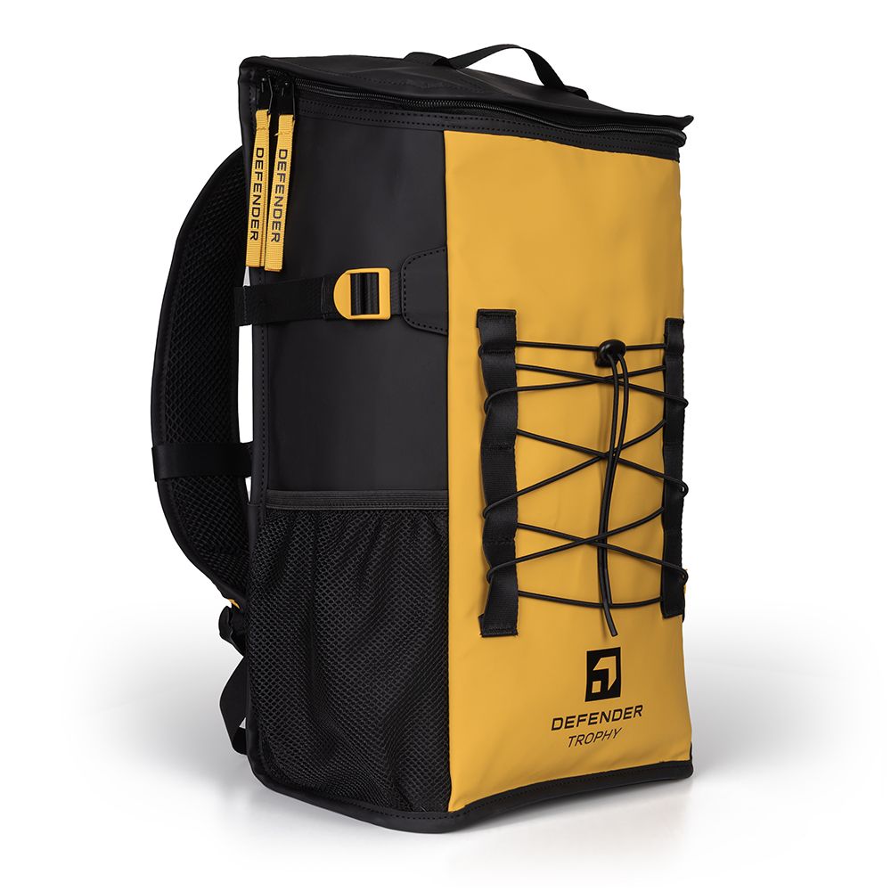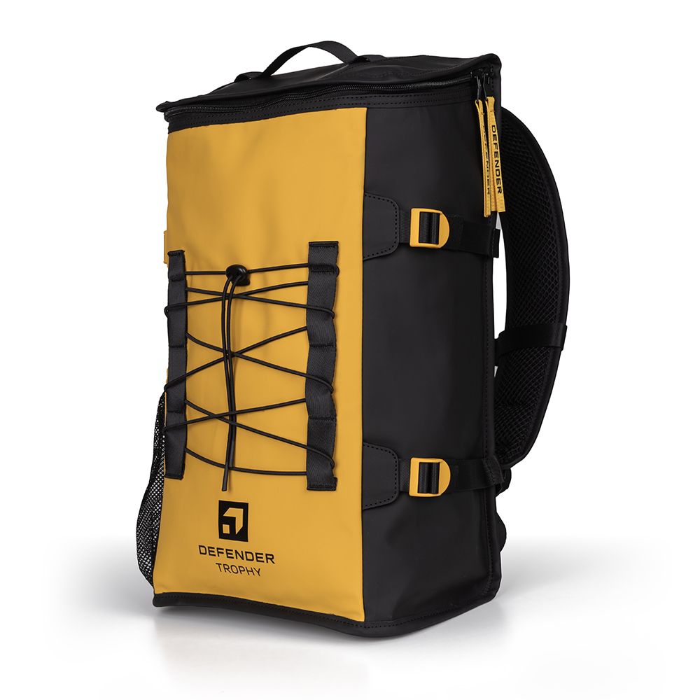 The Defender Trophy Backpack features a zip top opening, water-resistant coated zips, quick-access pockets, and a wipe-clean finish. Ready for any journey. 21 litre capacity.