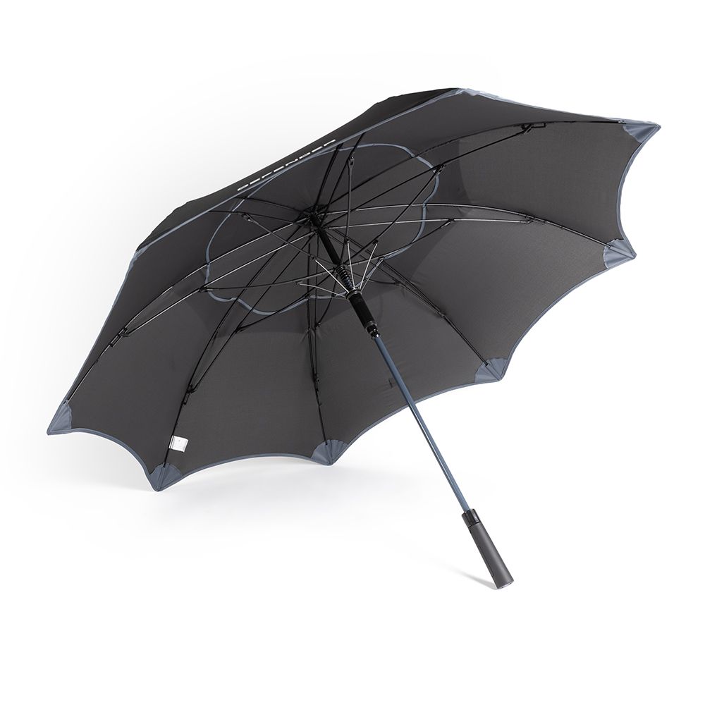Constructed with a lightweight and flexible fibreglass frame for strength, the Defender umbrella has a high-performance polyester fabric shell with a windproof vent-cover to stop it turning inside-out in a gust. Finished in black with grey trim, the rust-proof design incorporates an easy-to-grip handle and a cover featuring a practical carrying strap.